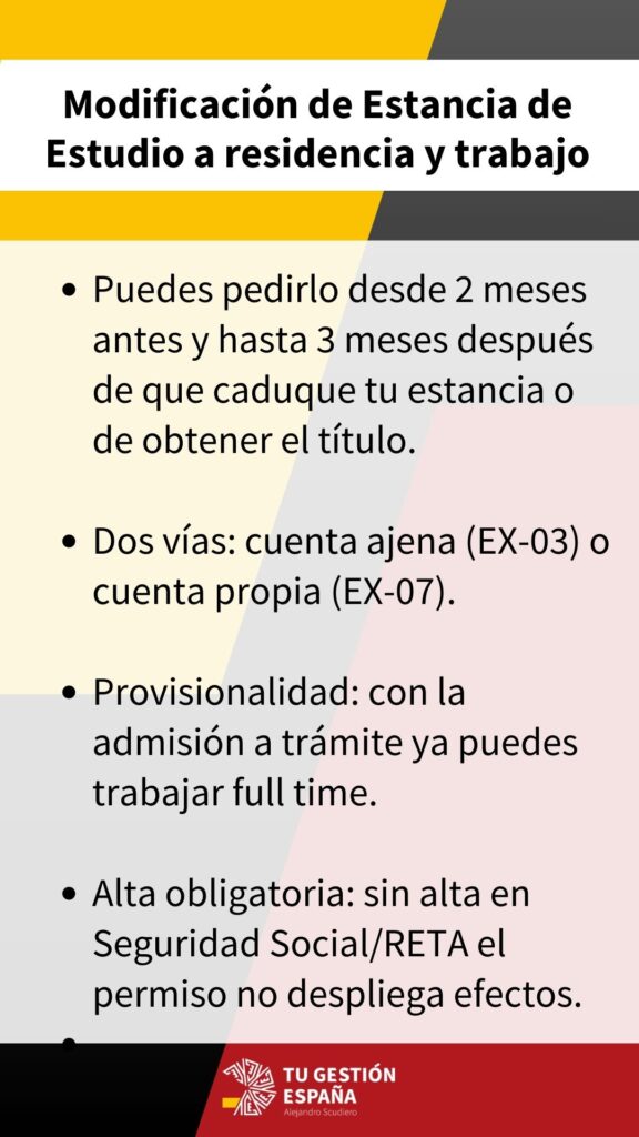 Después de concedido: para que el permiso valga, debes darte de alta en RETA (autónomos).